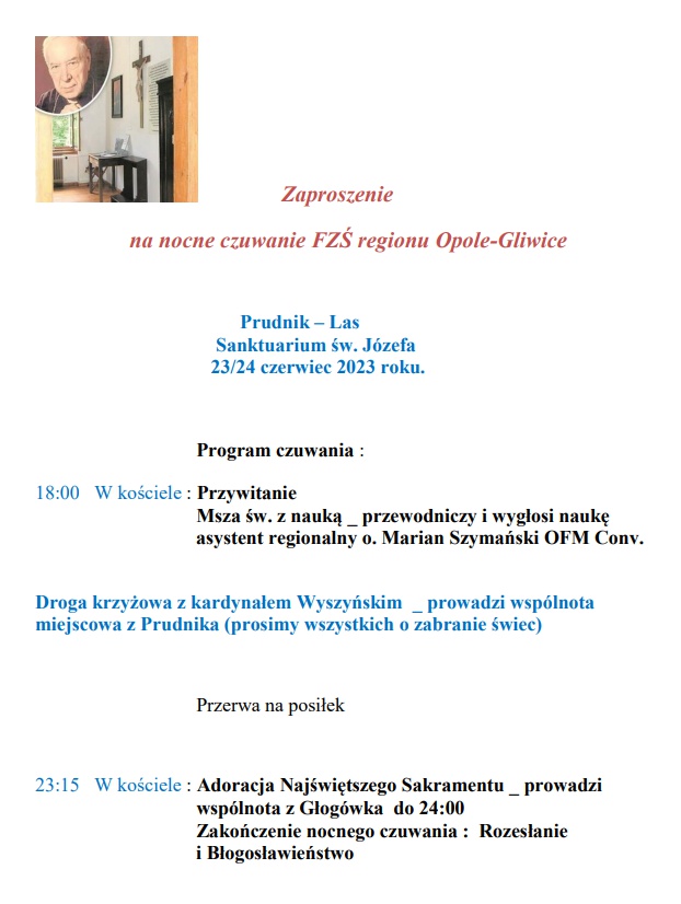 Zaproszenie na nocne czuwanie FZŚ regionu Opole-Gliwice